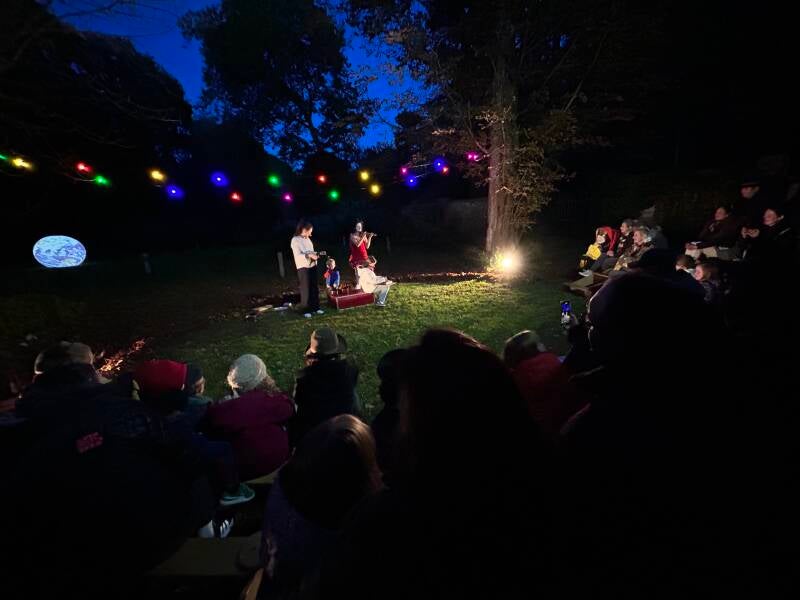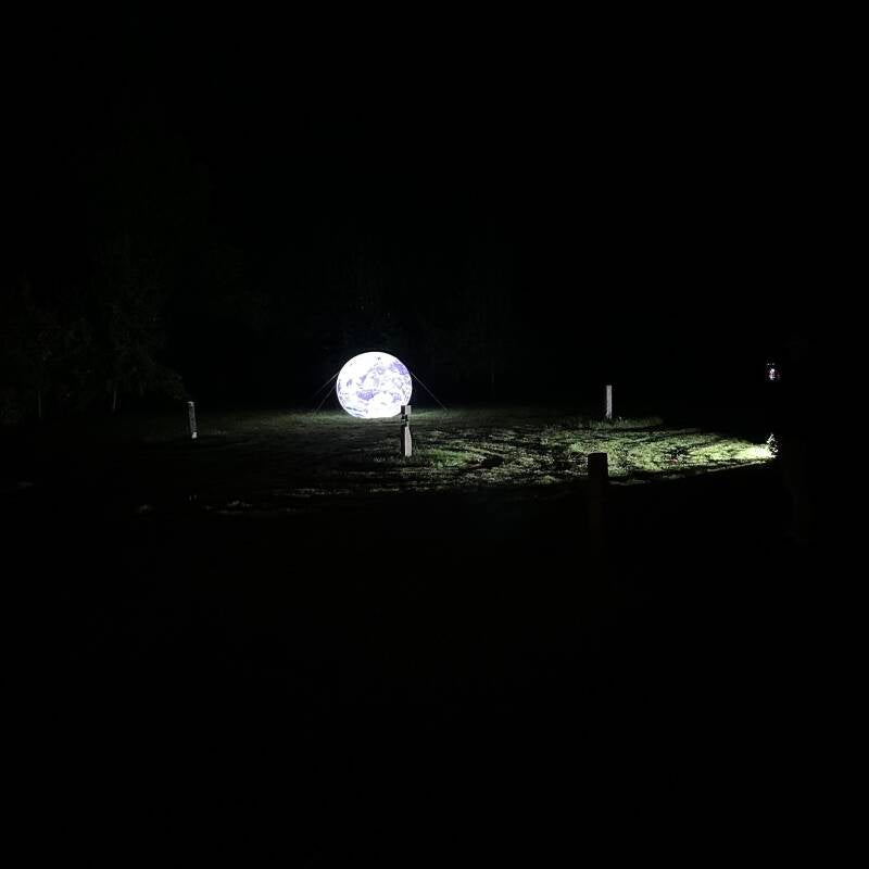 image nocturne de l'exposition "En surface" de Sébastien Hildebrand - septembre 2024 - dans le cadre de Jardins en scène 2024 © Patricia D