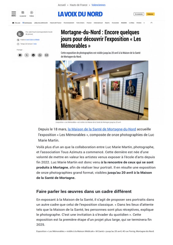 Presse exposition Luc Marie Martin "les mémorables 2" médiathèque de Rosult, Janvier 2025