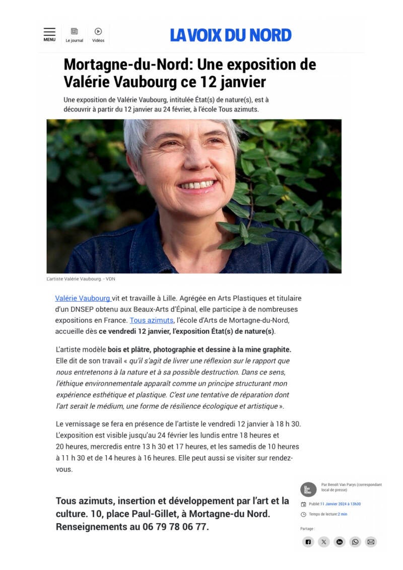 Presse exposition "Etat(s) de nature(s) Valérie Vaubourg, janvier 2024