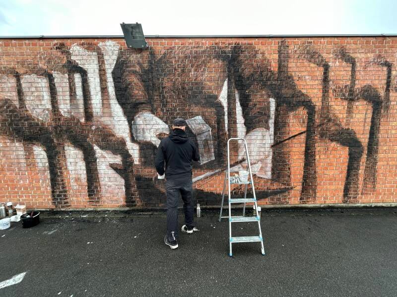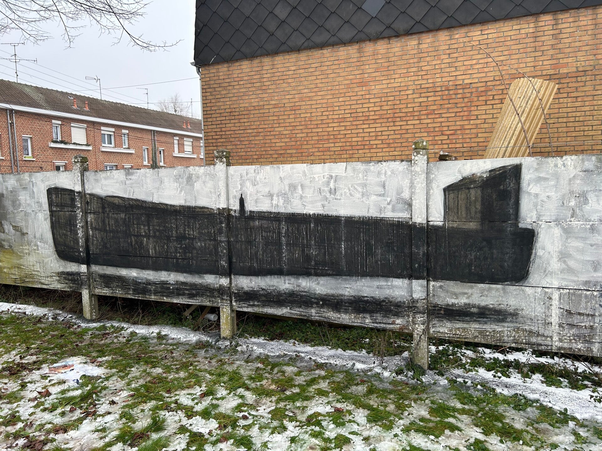 Fresque réalisée par Jérémy Moncheaux, dans le cadre de sa résidence artistique sur le territoire amandinois, rue Beauchamp à Mortagne du Nord.