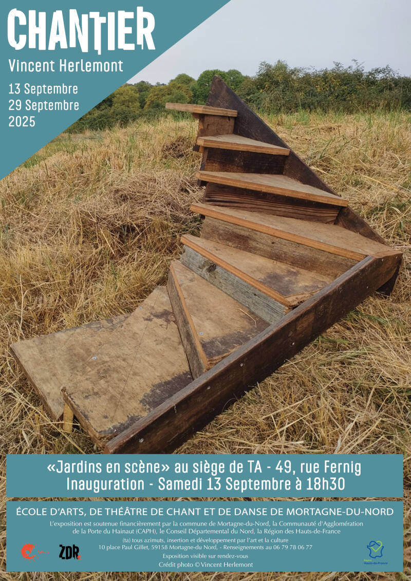 Vincent Herlemont pour son exposition "Chantier" dans le cadre de "Jardins en scènes 2025" organisé et soutenu financièrement par la Région des Hauts de France. Exposition visible du 13 au 29 septembre 2025.