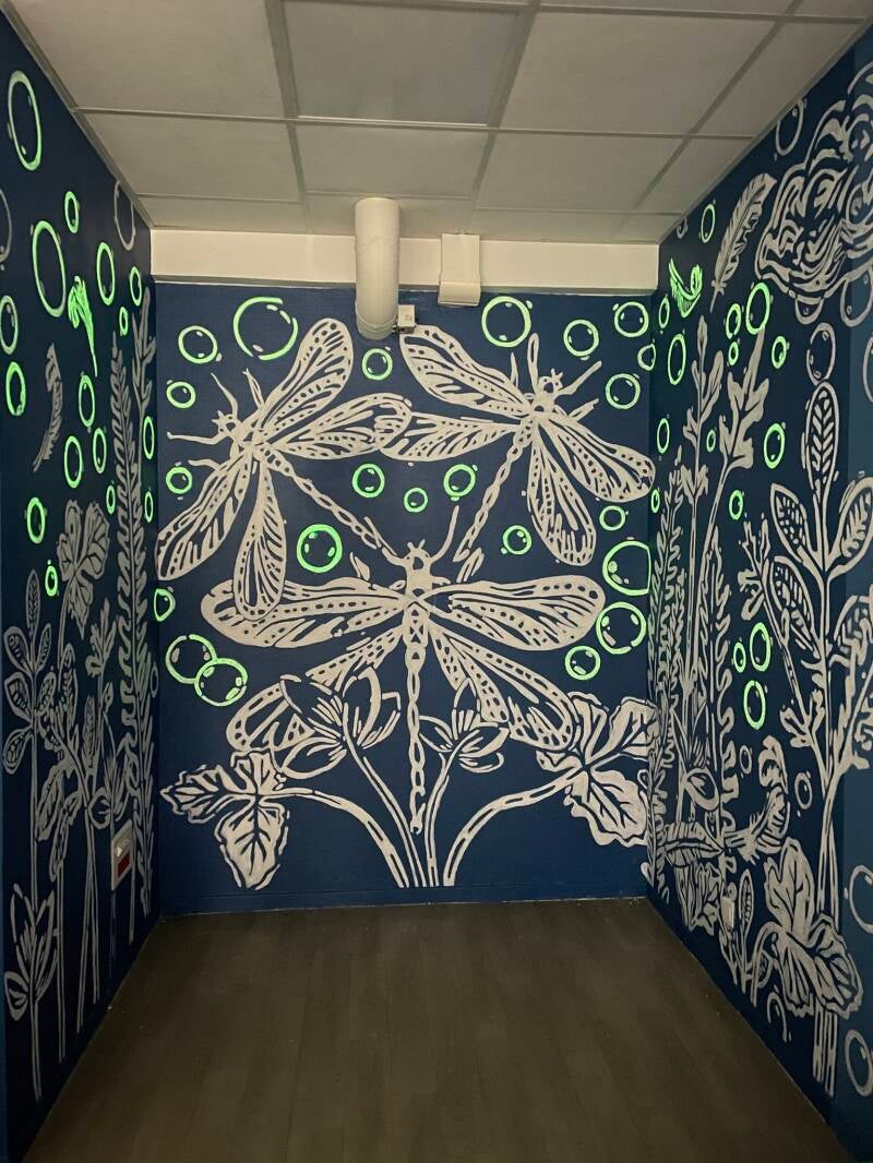 Les fresques réalisées avec Virginie Verlynde, plasticienne et carnettiste sont exclusivement collaboratives et participatives.