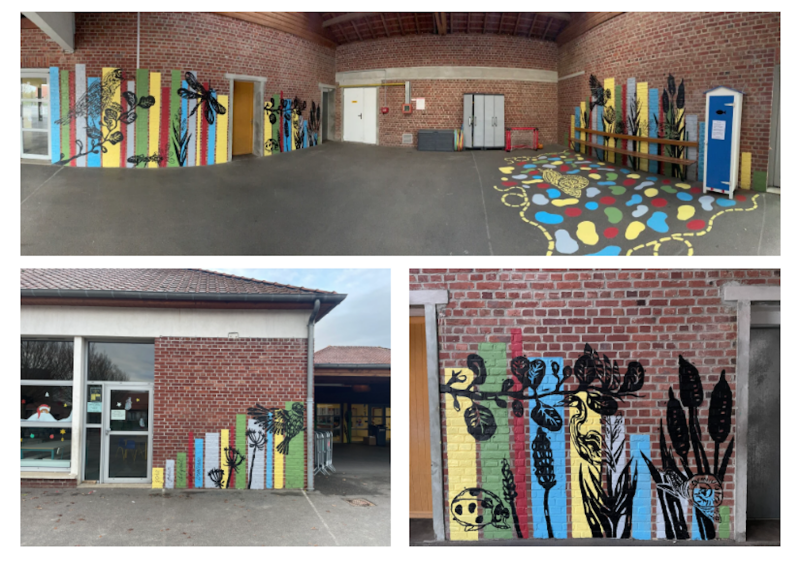 Fresque "participative" réalisée avec Virginie Verlynde, à l'école du centre de Lecelles entre septembre et novembre 2025 avec la classe de Madame Blot autour de la thématique "la nature de mes émotions". Le projet est soutenu financièrement par la ville de Lecelles. Projet réalisé en partenariat avec le Parc Naturel Régional Scarpe-Escaut autour de la faune et la flore de la ZEC de l'Elnon (Zone d'extension des crues".